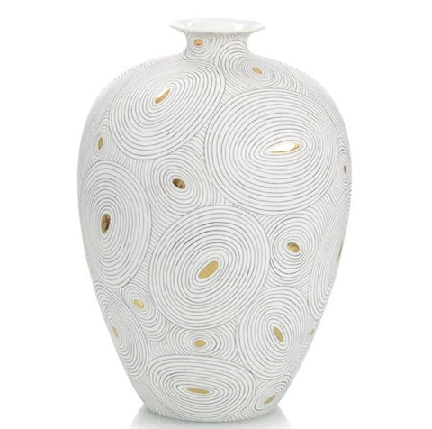 The Terrene Small Vase from Jamie Young has a grey swirl glass finish. The swirl pattern is hand blown and the finish will vary in shape, pattern and color as a result. No two are exactly alike. Holds water. The Terrene Small Vase from Jamie Young is one of many vases available at Luxe Home Philadelphia.